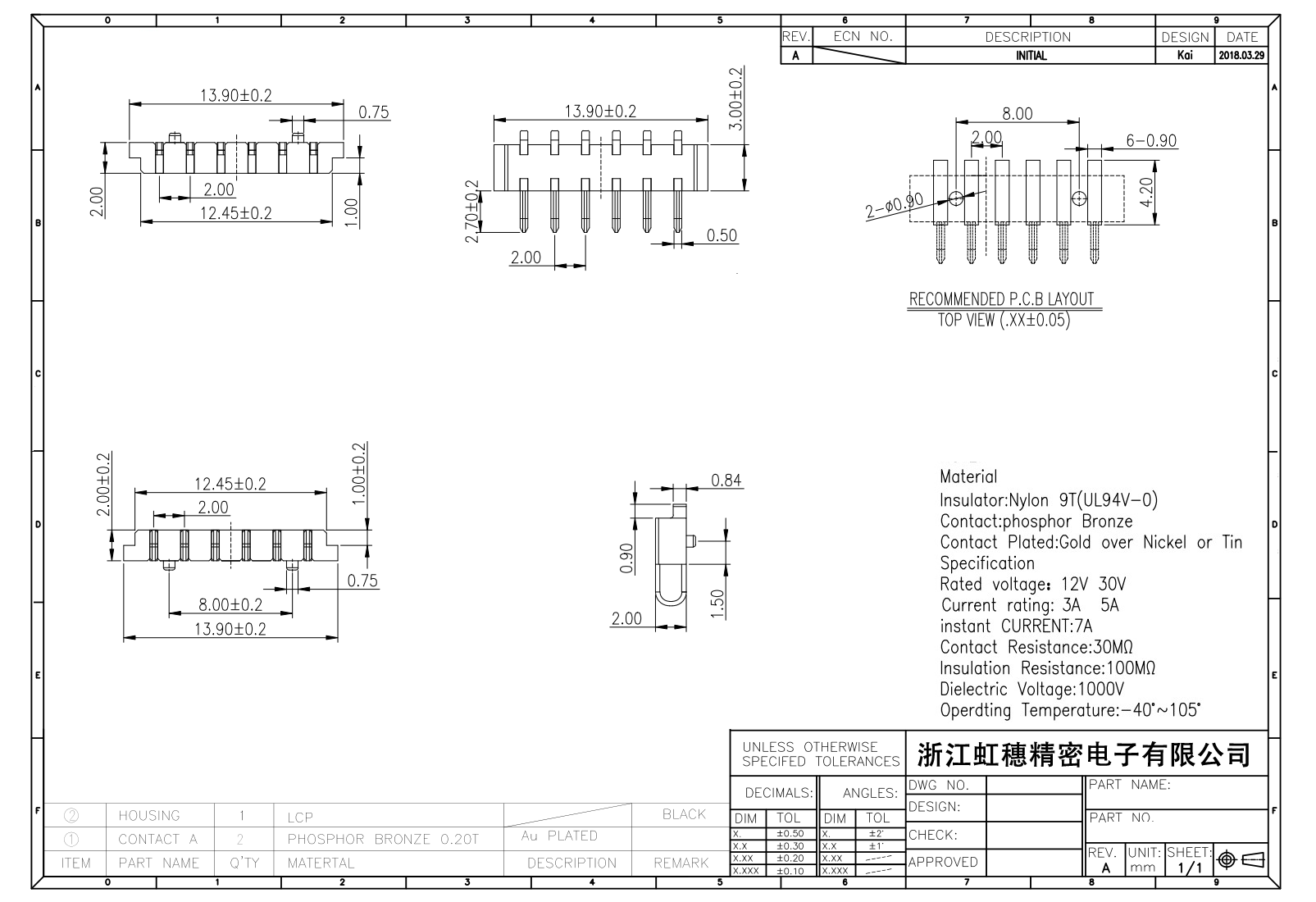 表面鍍層:金在鎳/錫之上,鍍層厚度3U