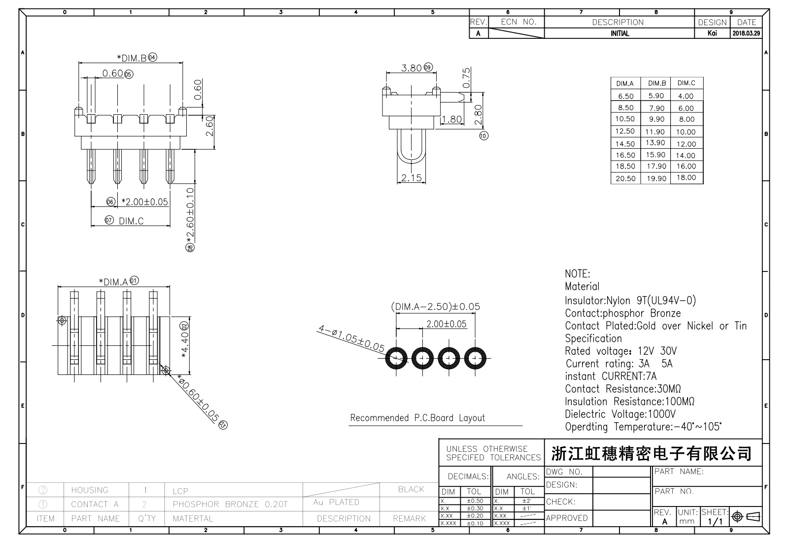 表面鍍層:金在鎳/錫之上,鍍層厚度3U