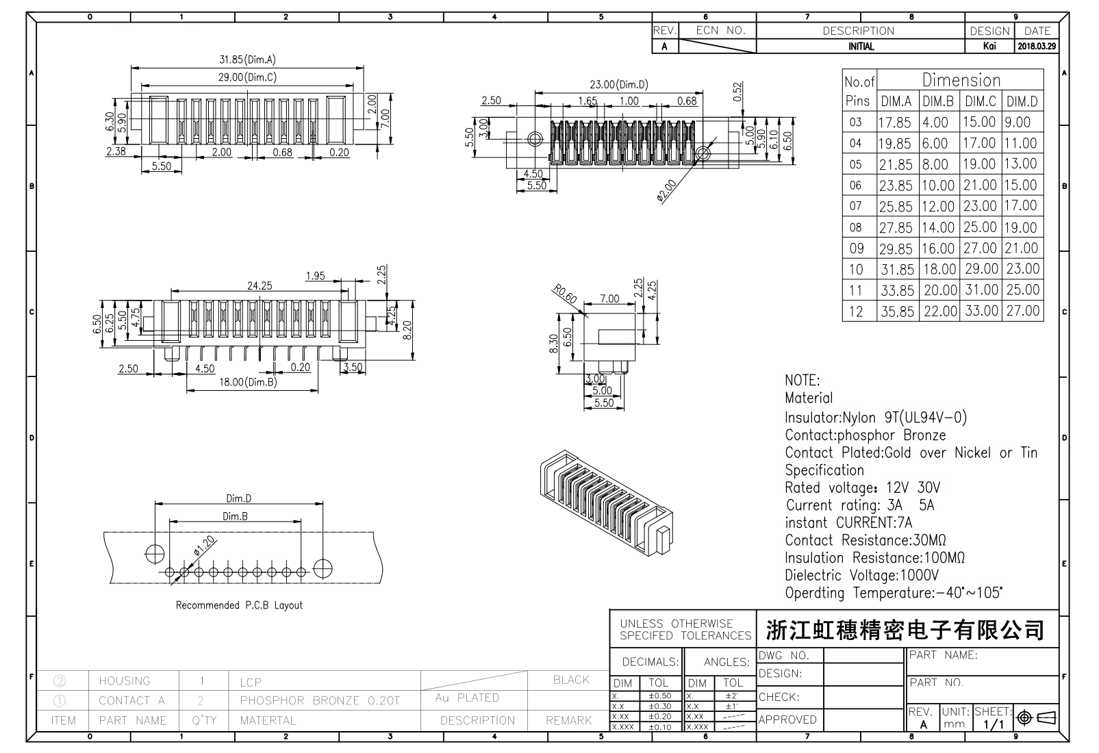表面鍍層:金在鎳/錫之上,鍍層厚度3U