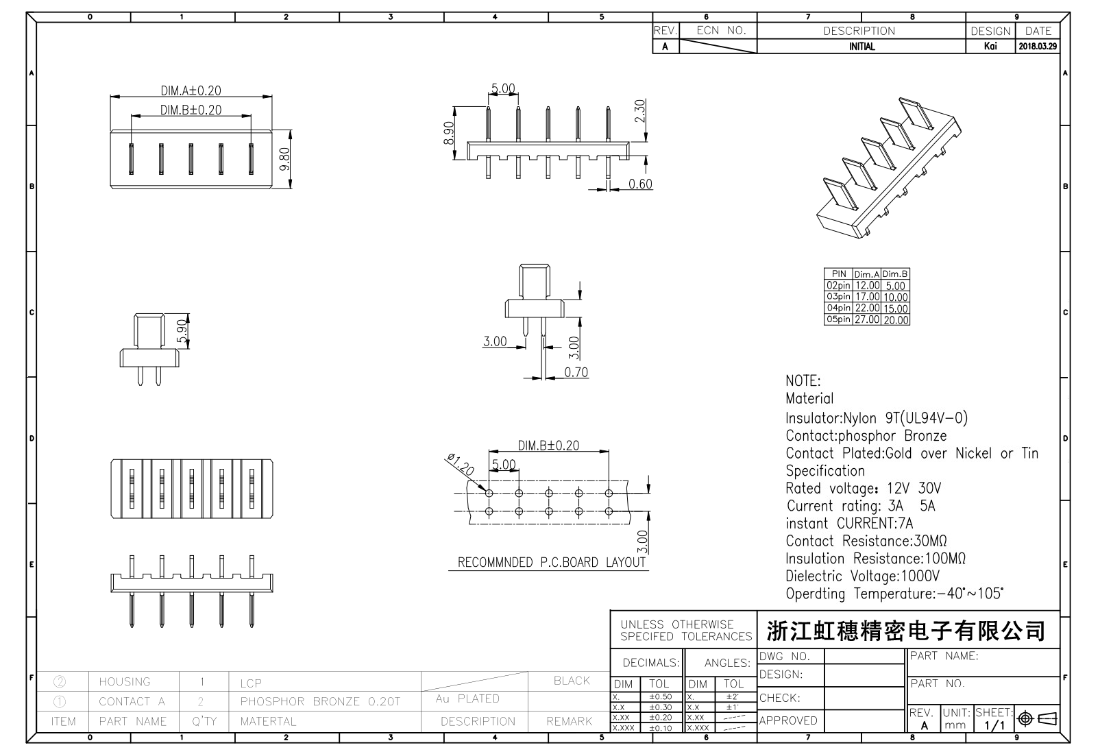 表面鍍層:金在鎳/錫之上,鍍層厚度3U