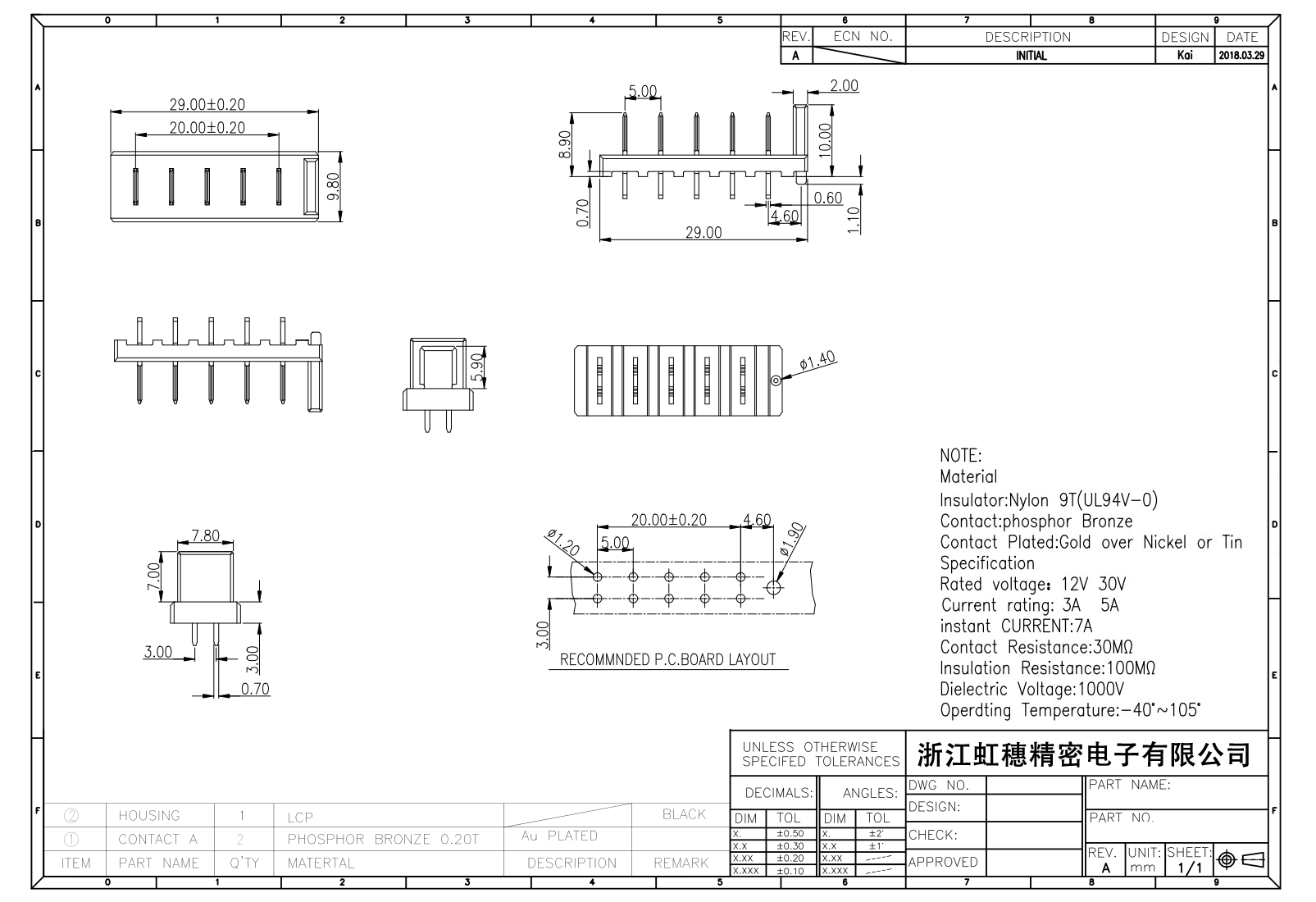 表面鍍層:金在鎳/錫之上,鍍層厚度3U