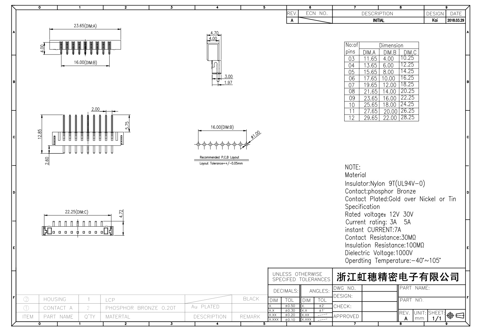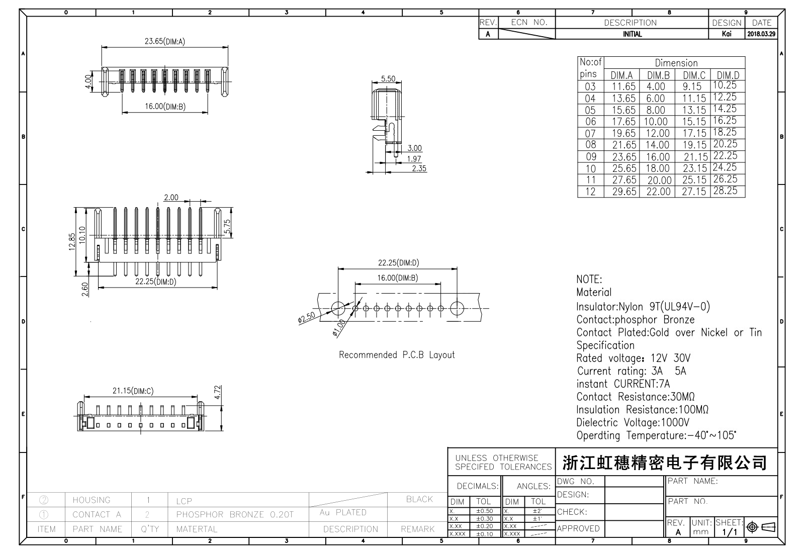 表面鍍層:金在鎳/錫之上,鍍層厚度3U