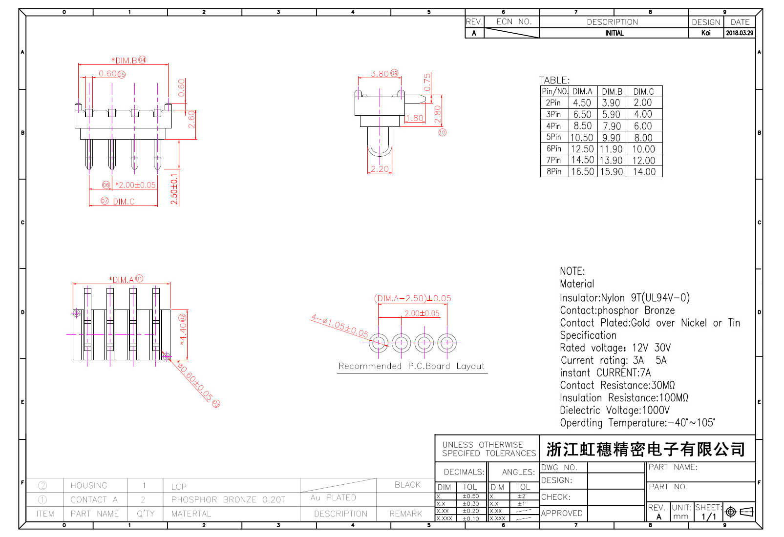 表面鍍層:金在鎳/錫之上,鍍層厚度3U