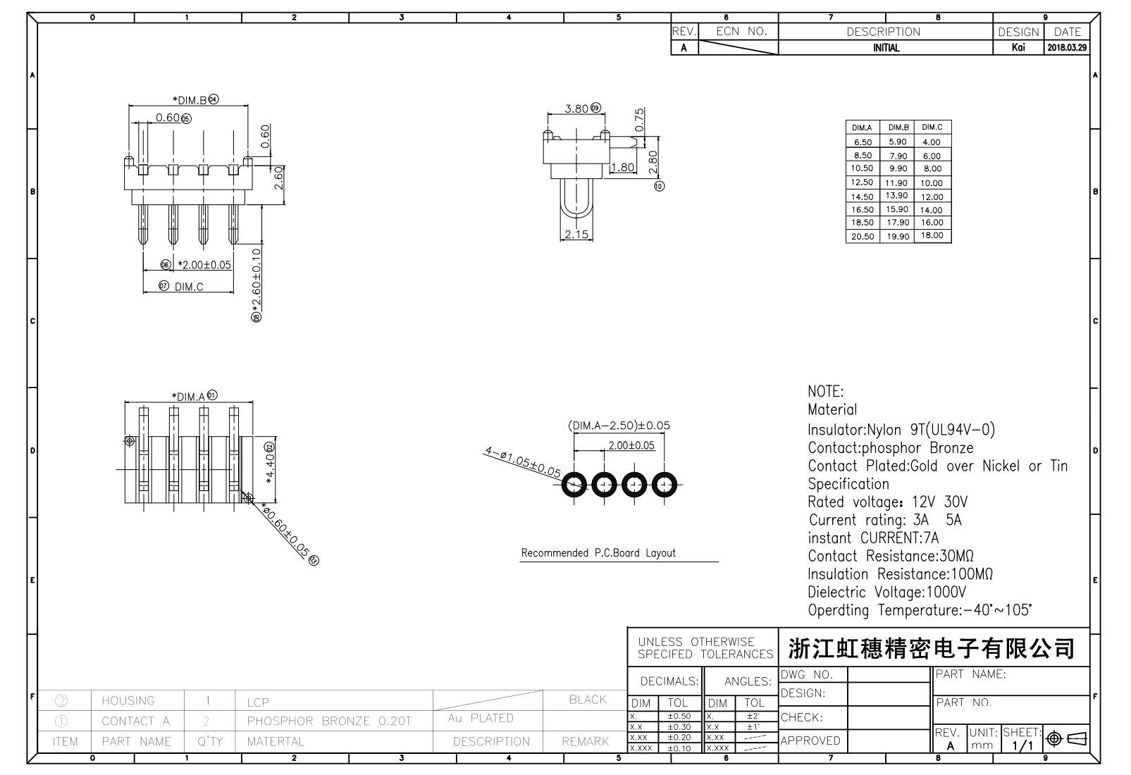 絕緣主體:Nylon 6T/9TUL94V-0
