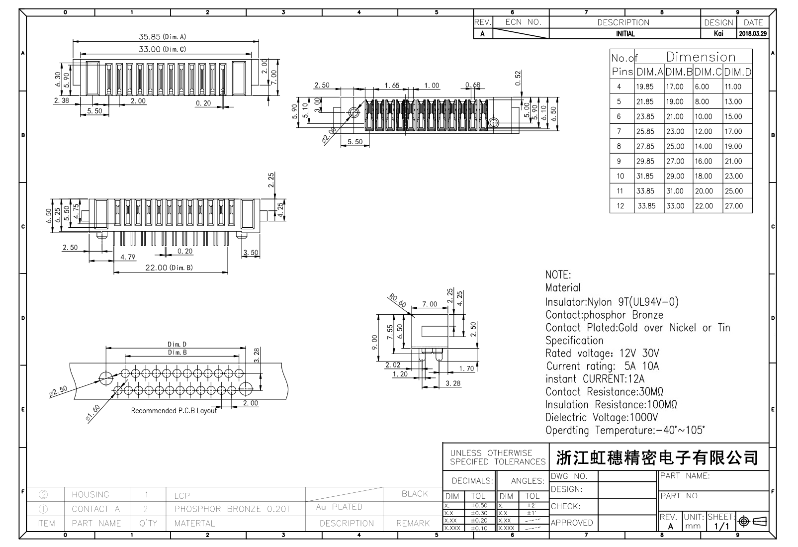 表面鍍層:金在鎳/錫之上,鍍層厚度3U