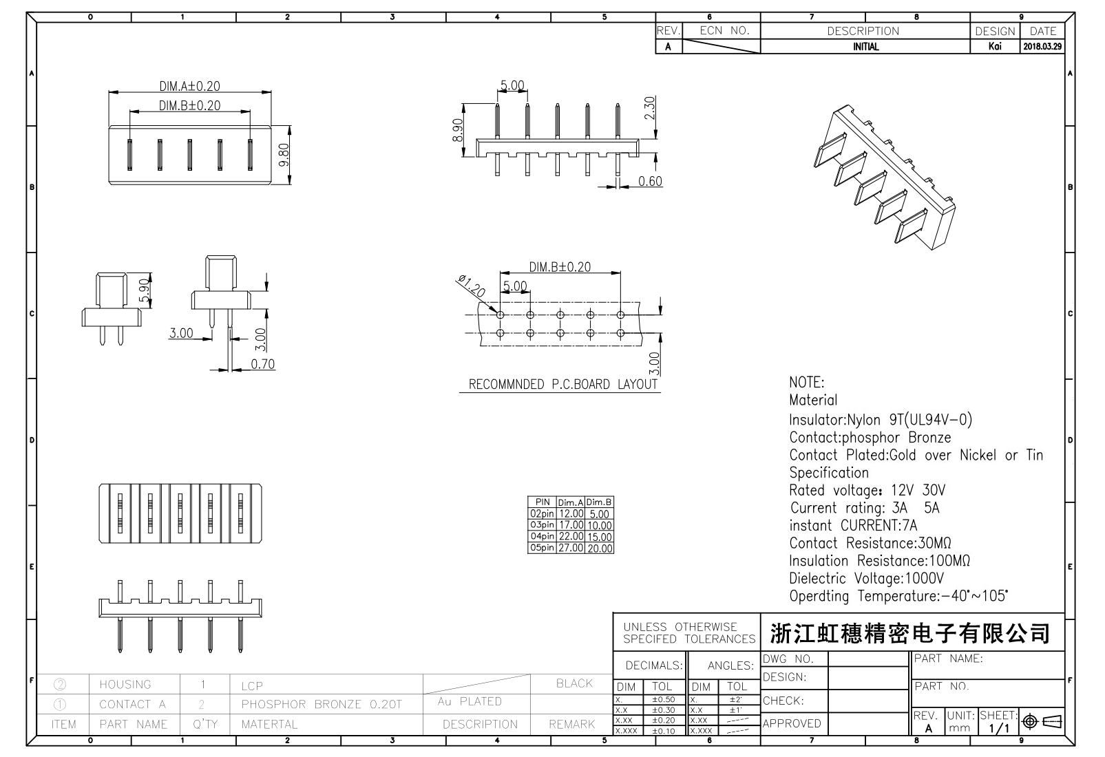 額定電流:3A 5A 7A/PIN