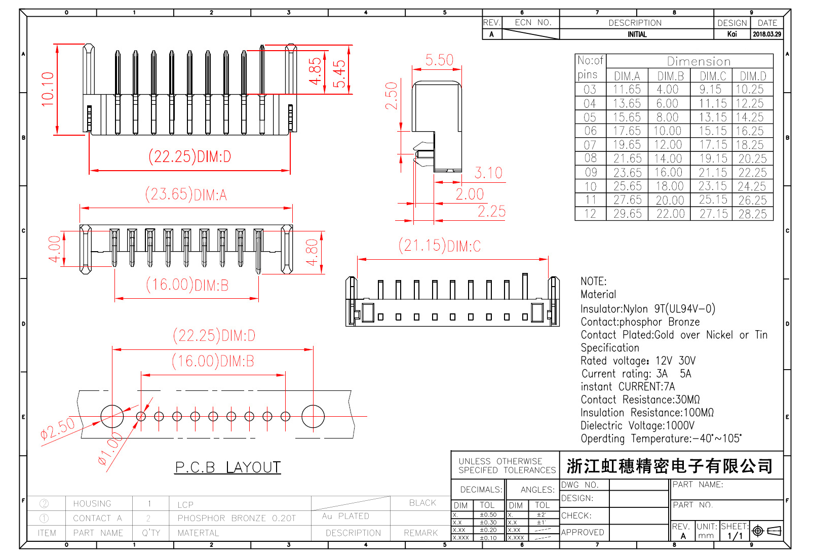 絕緣主體:Nylon 6T/9TUL94V-0