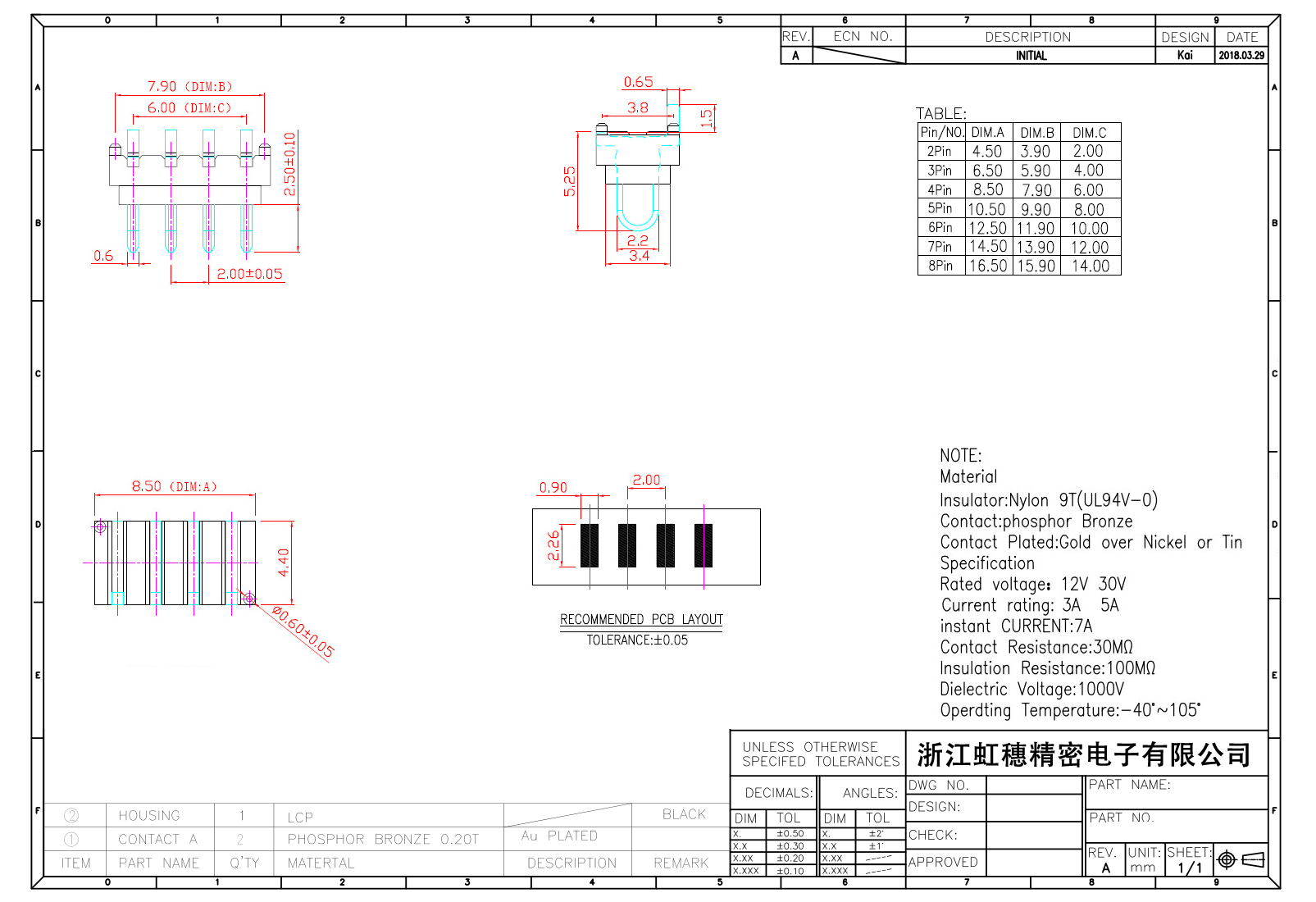 絕緣主體:Nylon 6T/9T(UL94V-0)