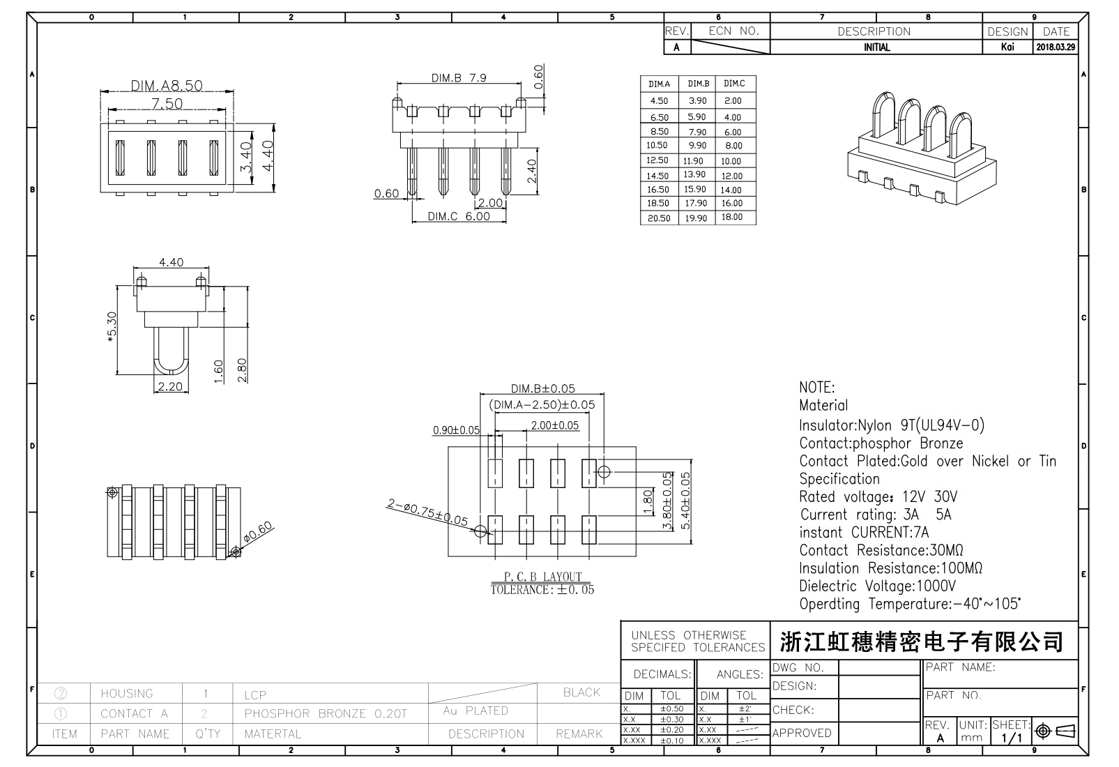 絕緣主體:Nylon 6T/9TUL94V-0