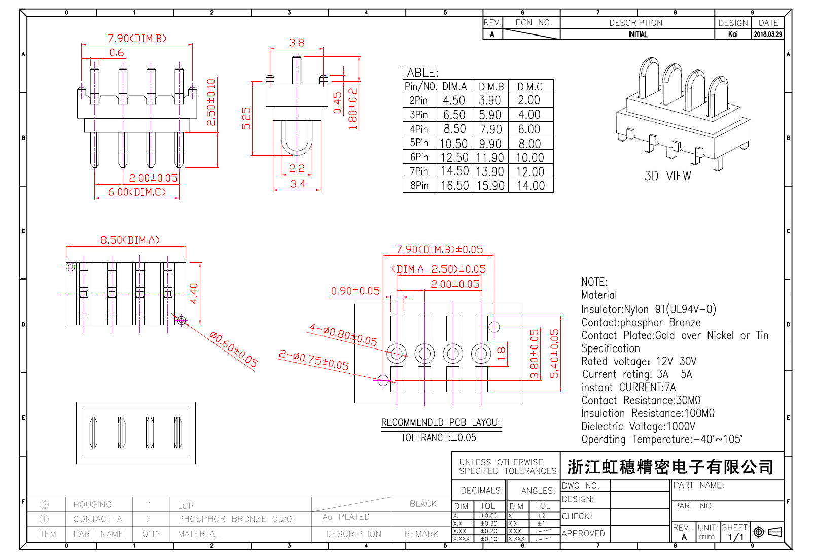 絕緣主體:Nylon 6T/9T(UL94V-0)