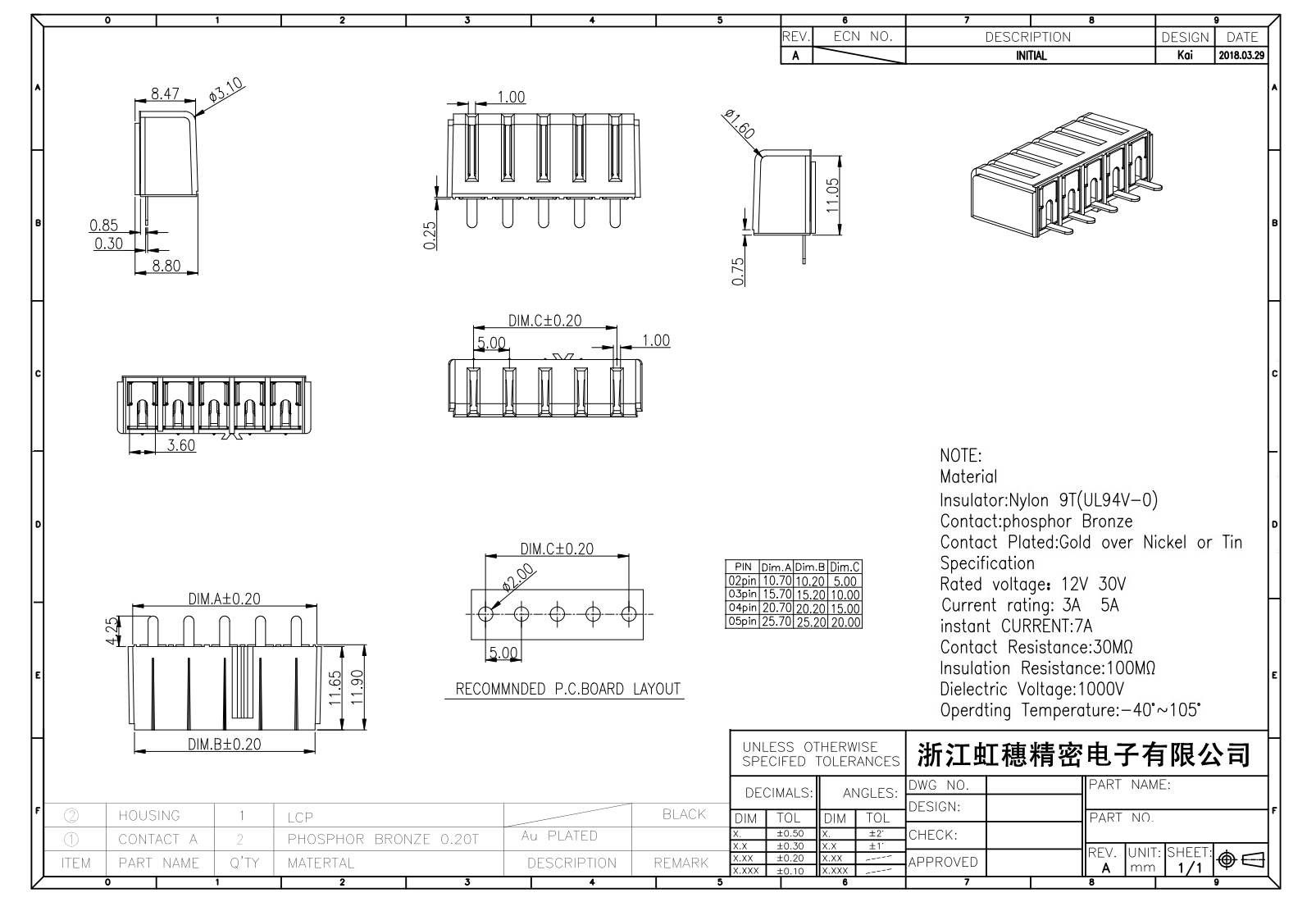表面鍍層:金在鎳/錫之上,鍍層厚度3U