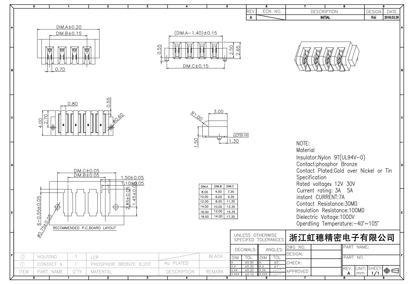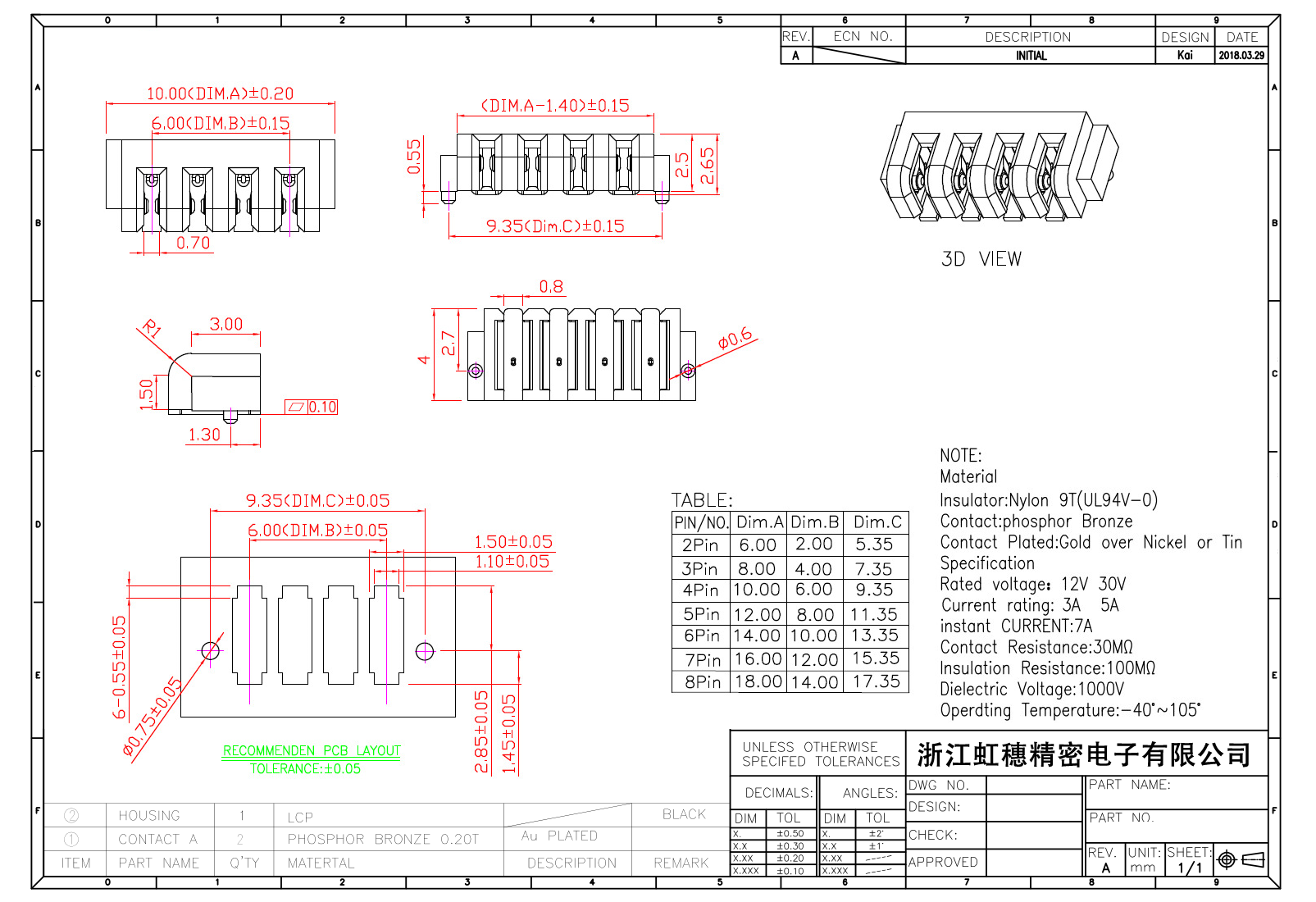 絕緣主體:Nylon 6T/9TUL94V-0