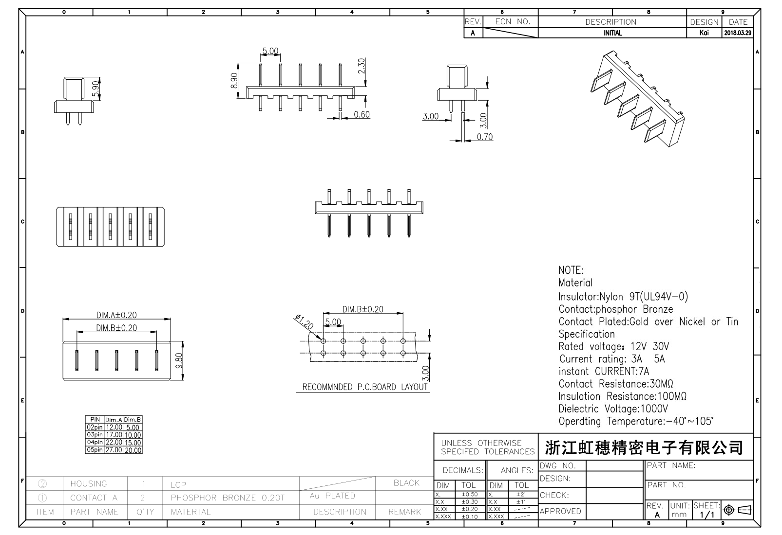 額定電流:3A 5A 7A/PIN