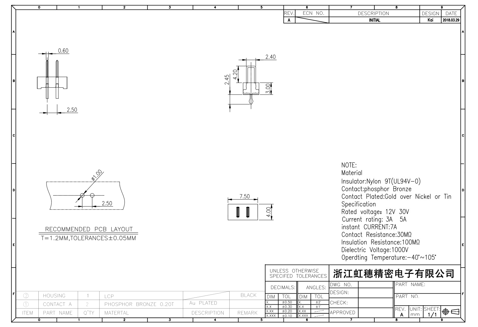絕緣主體:Nylon 6T/9TUL94V-0