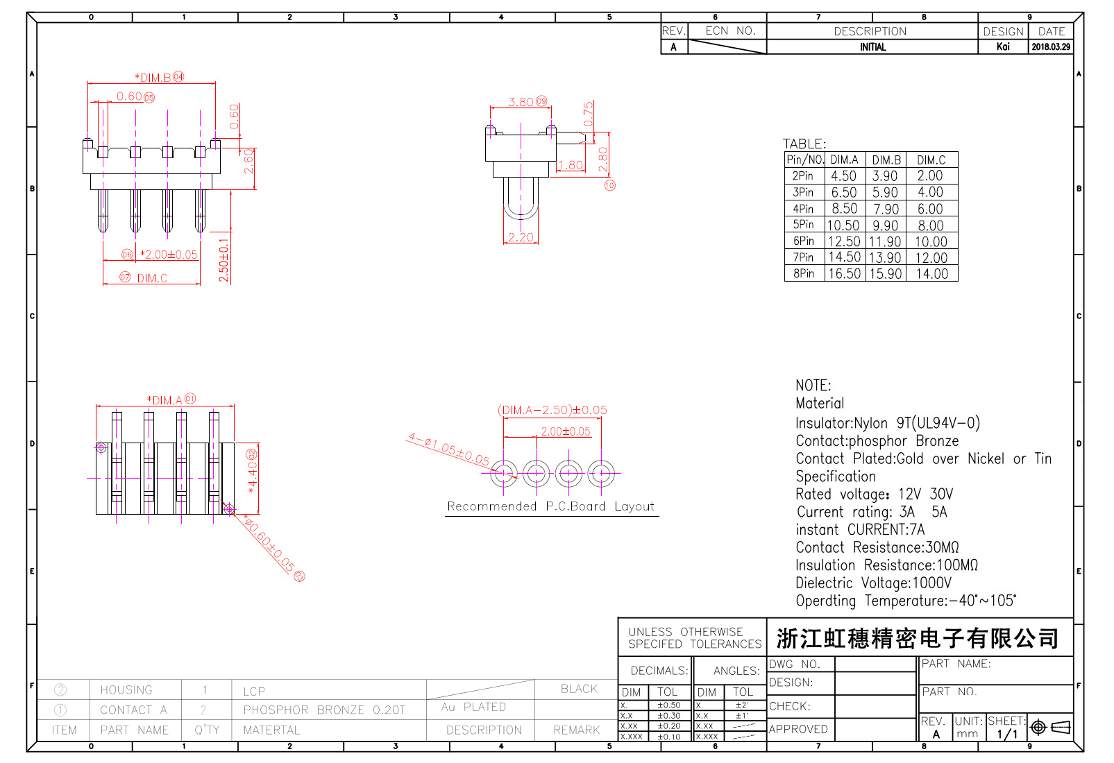 表面鍍層:金在鎳/錫之上,鍍層厚度3U