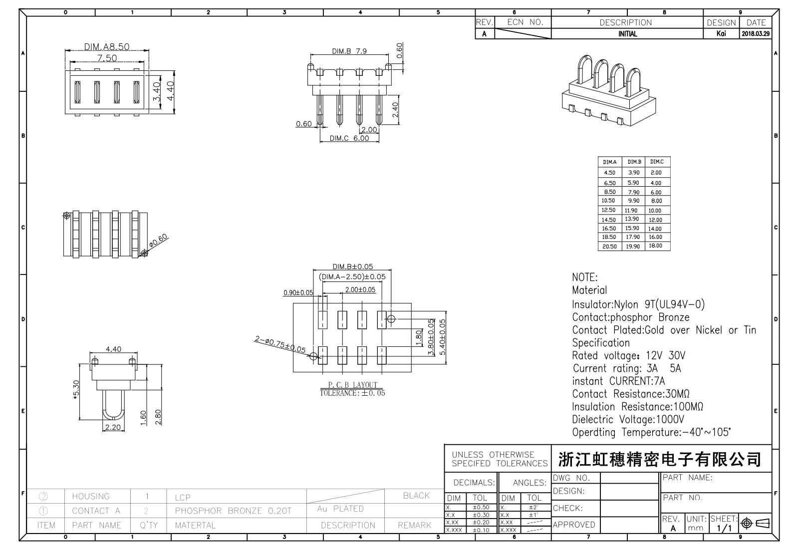 絕緣主體:Nylon 6T/9TUL94V-0
