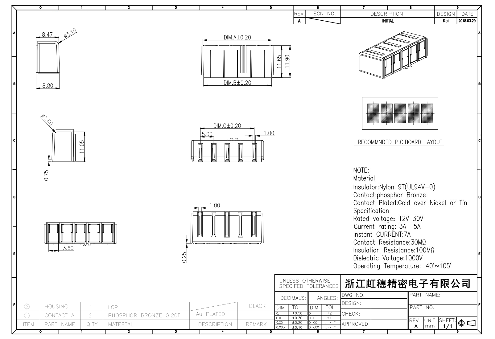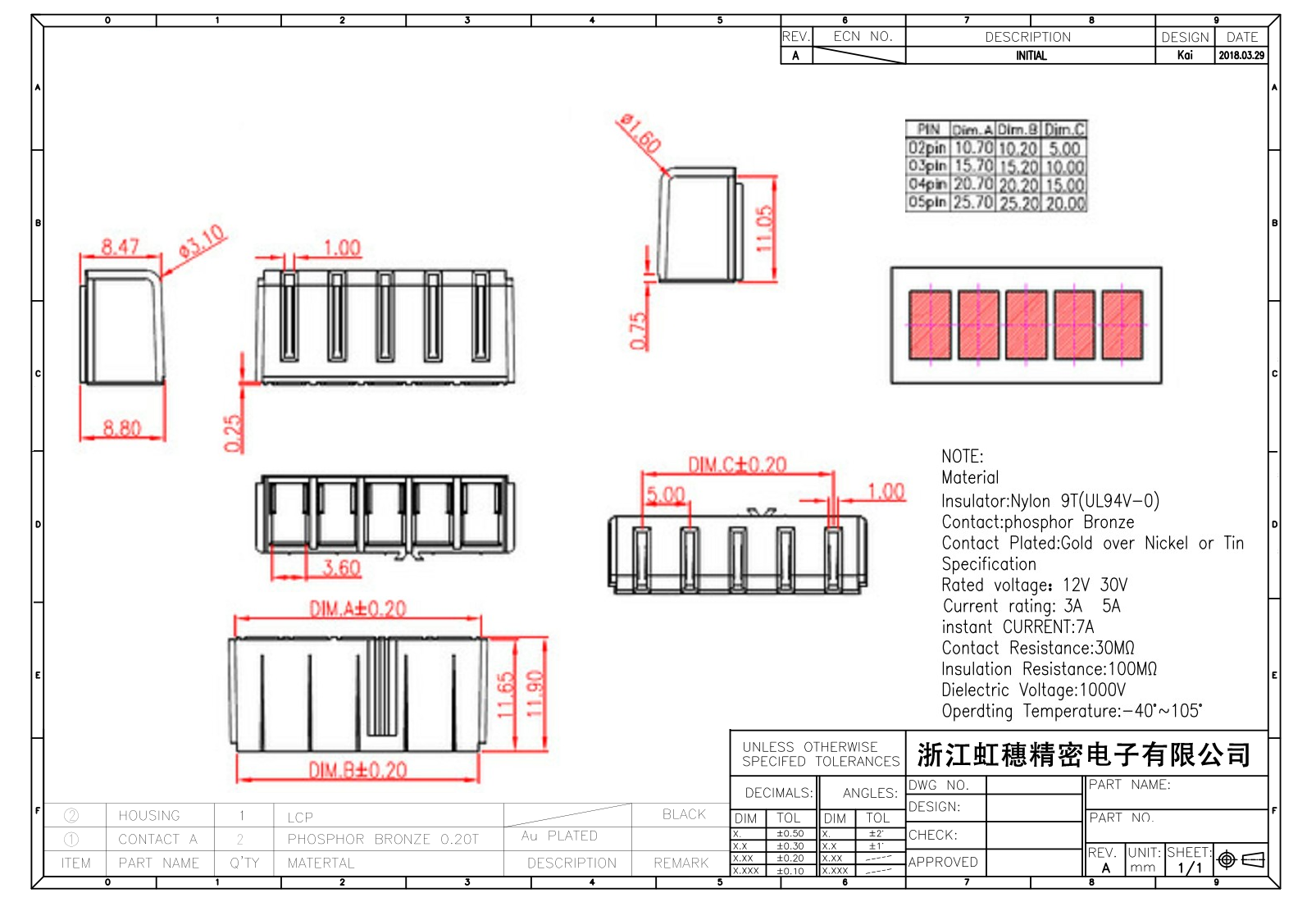 絕緣主體:Nylon 6T/9TUL94V-0