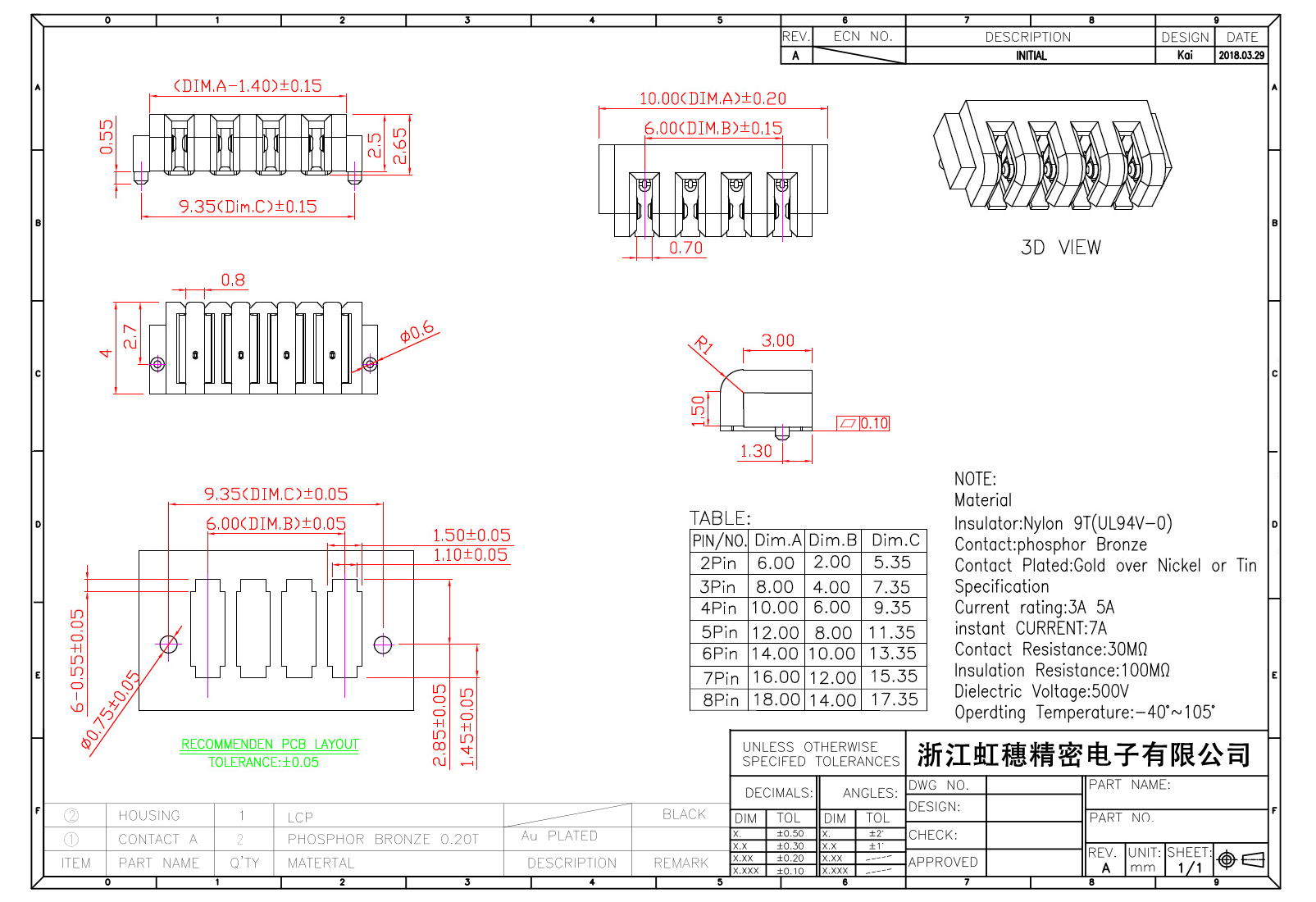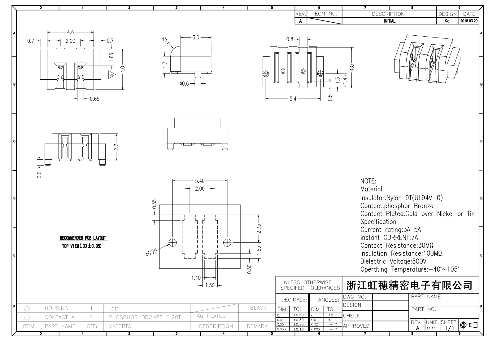 絕緣主體:Nylon 6T/9TUL94V-0