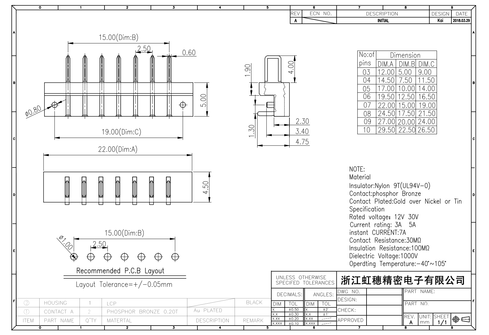 絕緣主體:Nylon 6T/9T(UL94V-0)