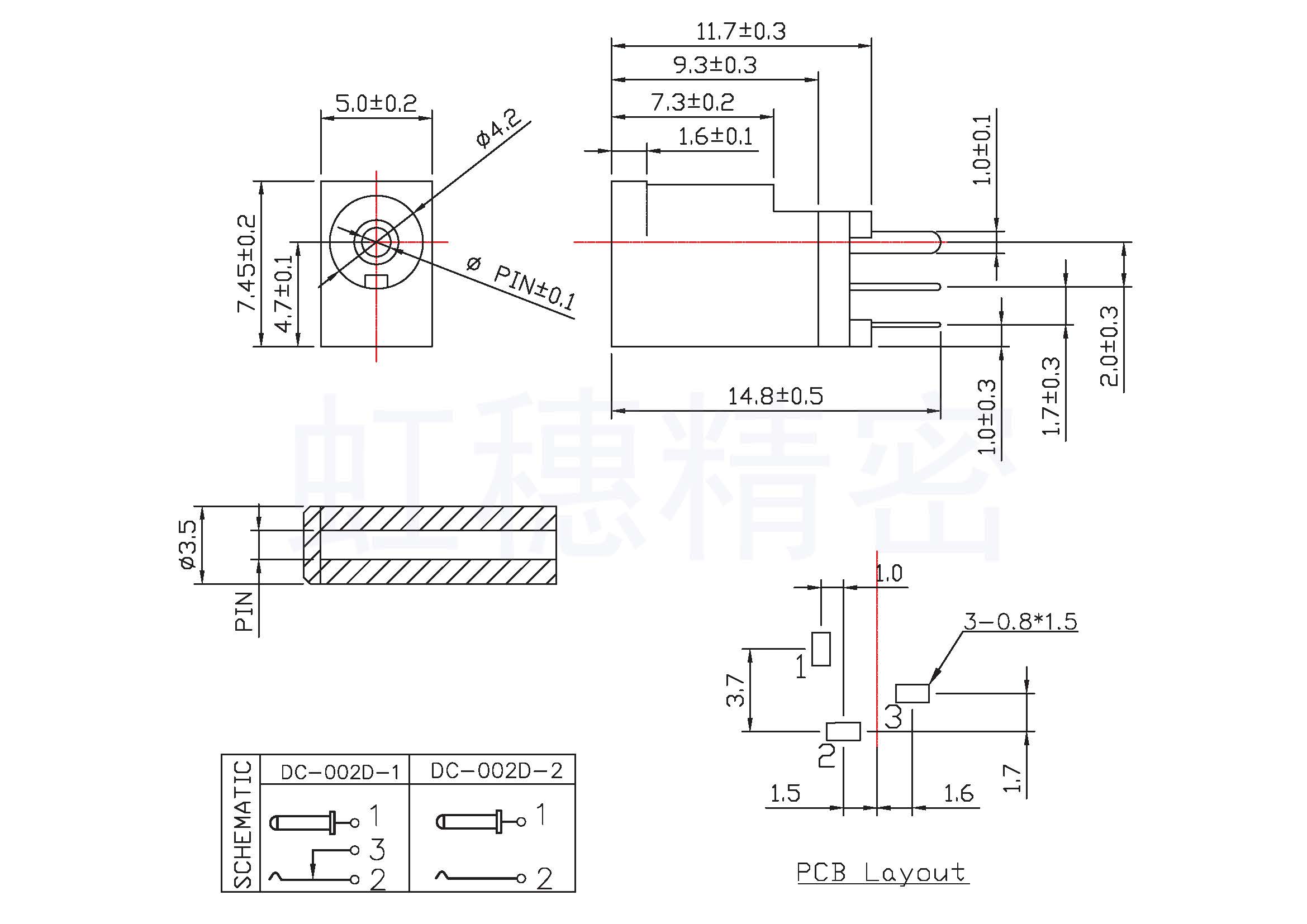 DC-001內芯針1.0mm 直流電源插座 DC座圓針外裸 3腳直插腳