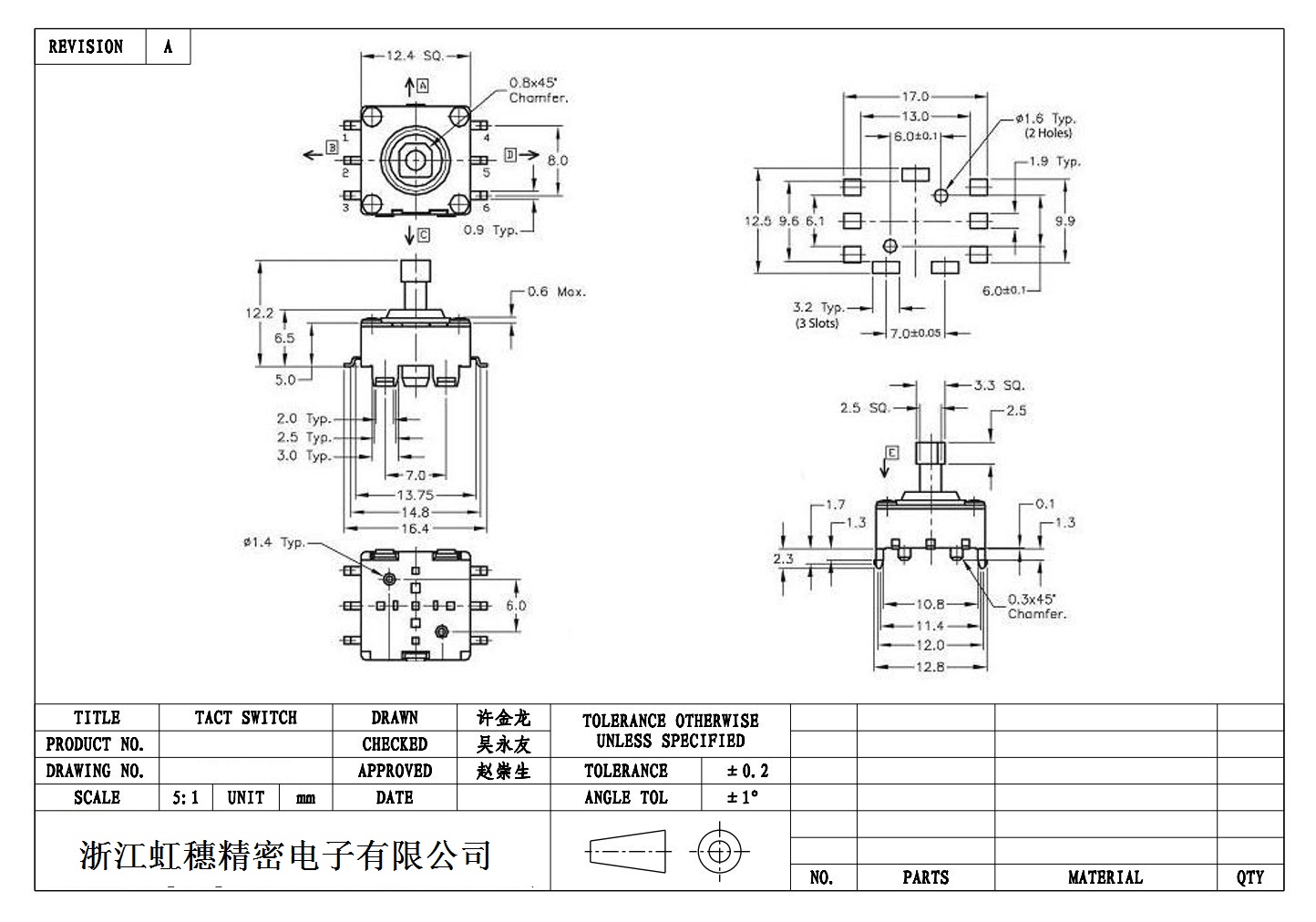 MultiFunctional Five-way Switch Light Tact Five-way Switch technical parameters: