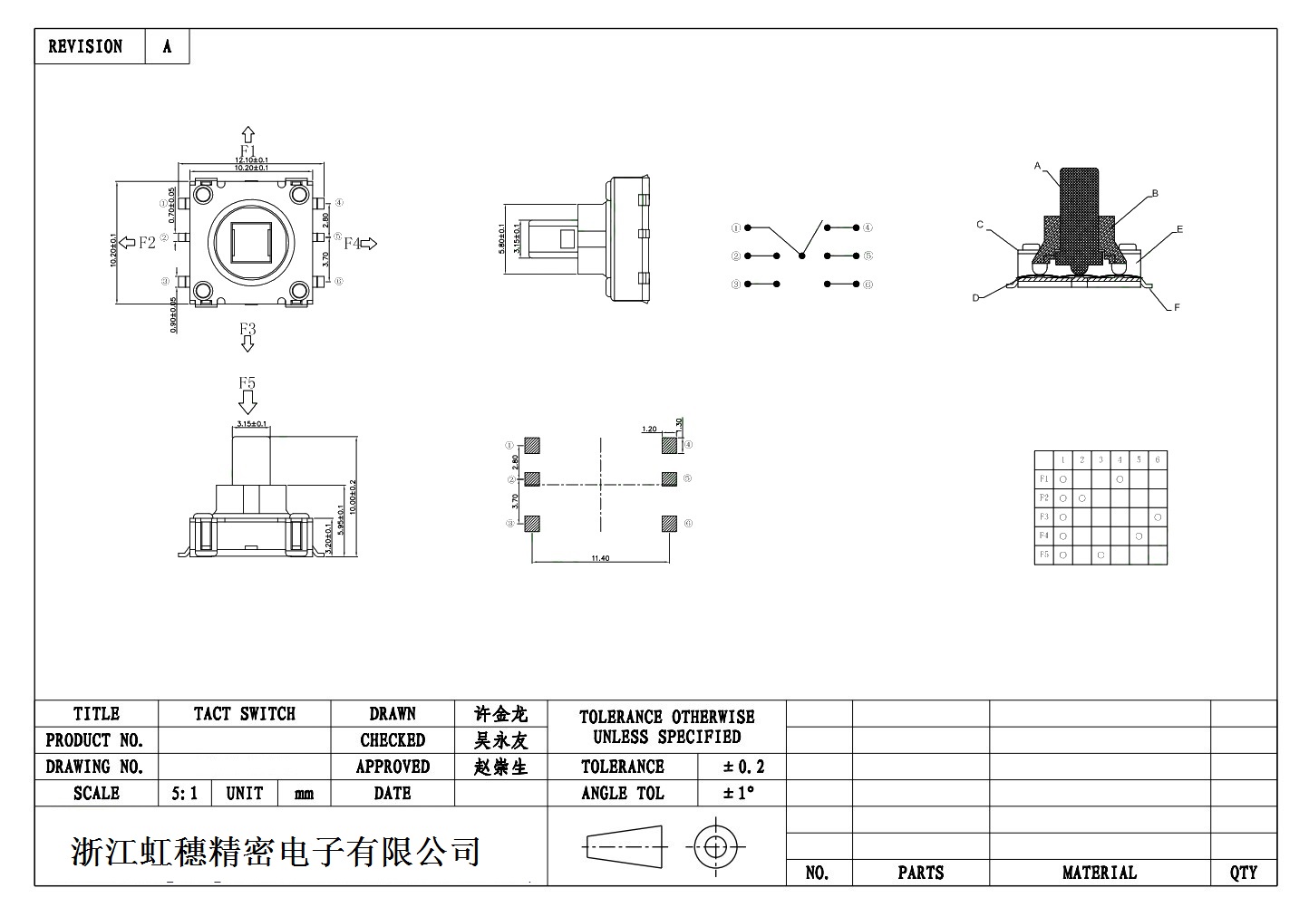 多功能五向開(kāi)關(guān)  輕觸五向開(kāi)關(guān)技術(shù)參數(shù):