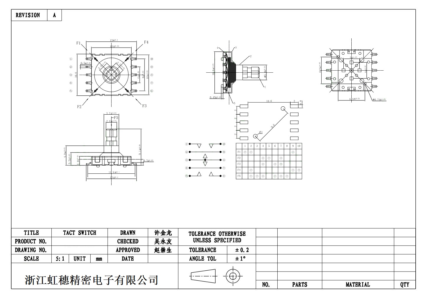 多功能五向開(kāi)關(guān)  輕觸五向開(kāi)關(guān)技術(shù)參數(shù):