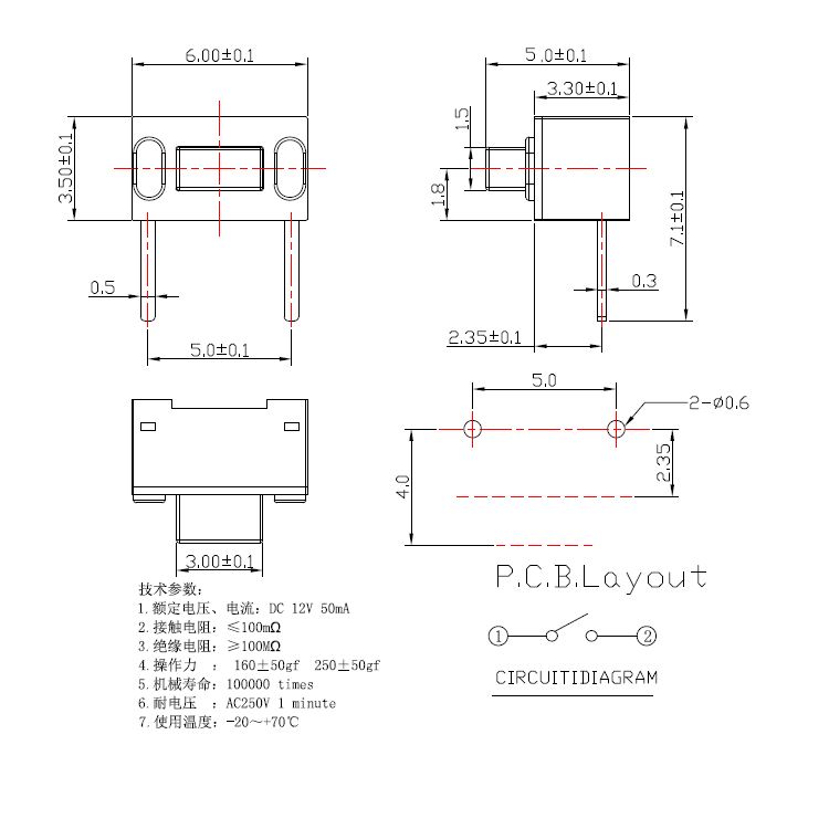 7. 使用濕度: ≤85% RH                    8. 使用壽命: 100000次