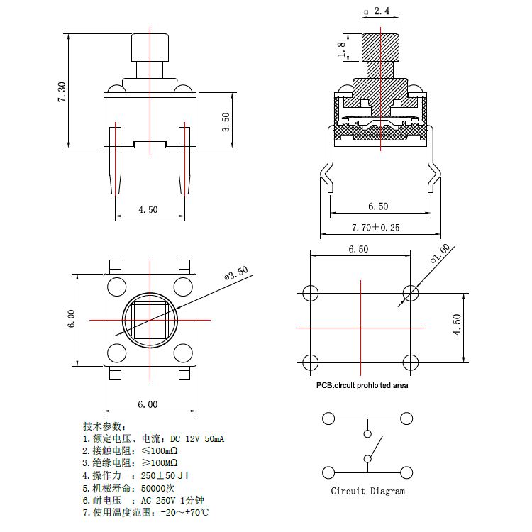 規(guī)格:6mm*6mm*7 ? ? ? ? ? ? ? ? ?力度:250士50gf
