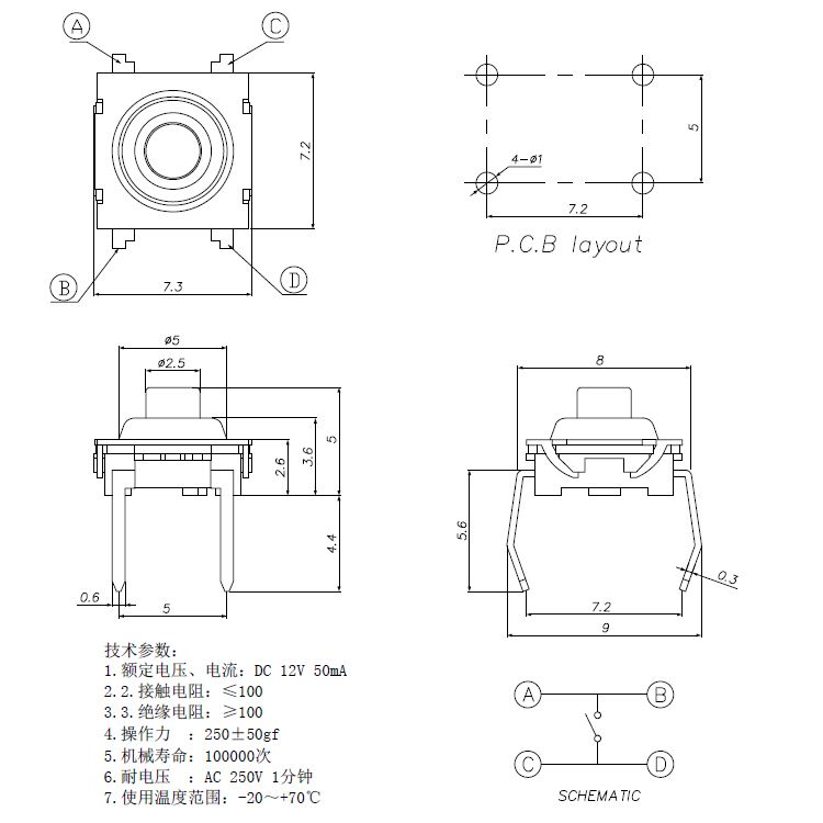 規(guī)格:7mm*7mm ? ? ? ? ? ? ? ? ?力度:250士50gf