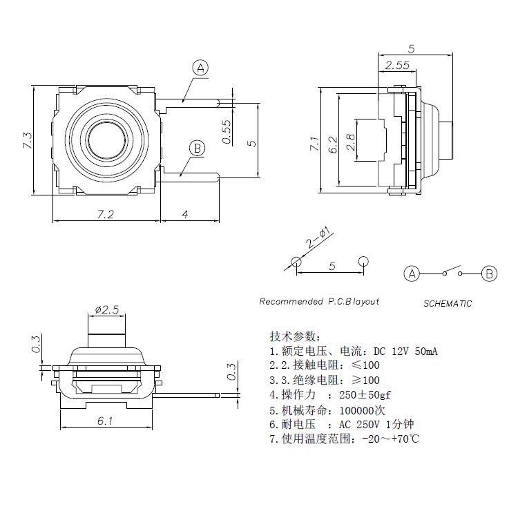 規格:7mm*7mm ? ? ? ? ? ? ? ? ?力度:250士50gf