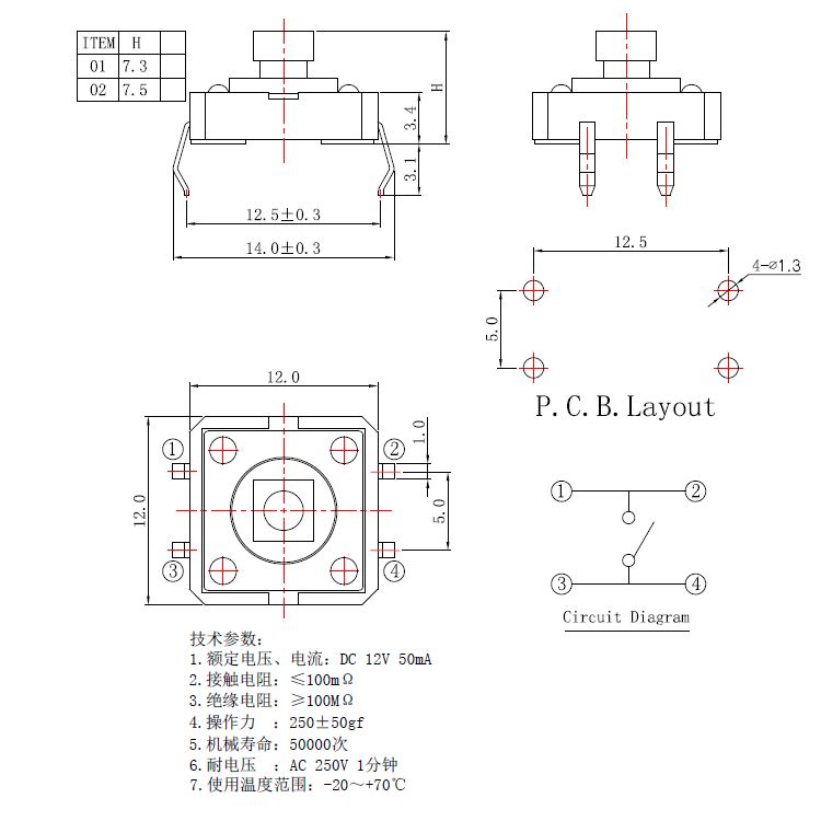 輕觸開關技術參數: