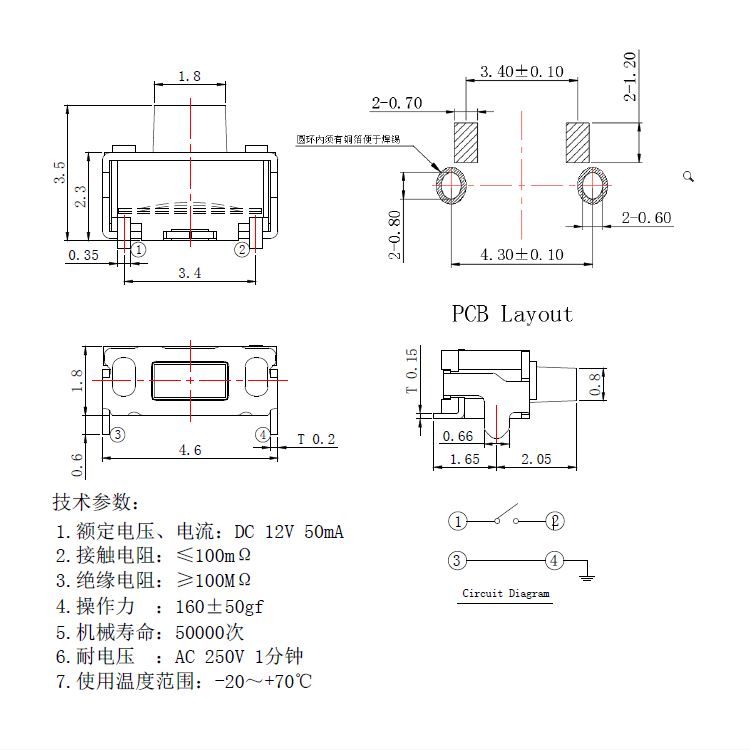 輕觸開關技術參數: