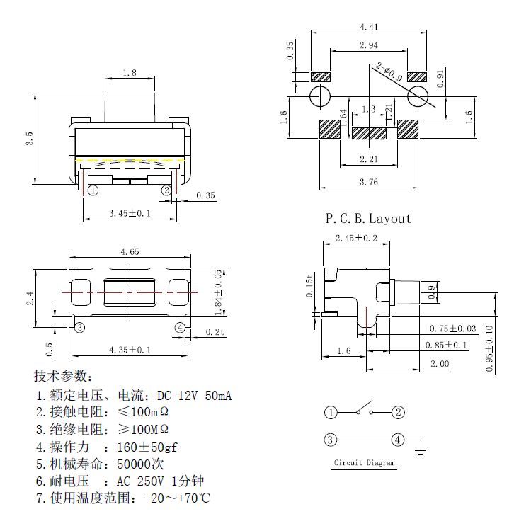 規(guī)格:2mm*4mm ? ? ? ? ? ? ? ? ?力度:160士50gf