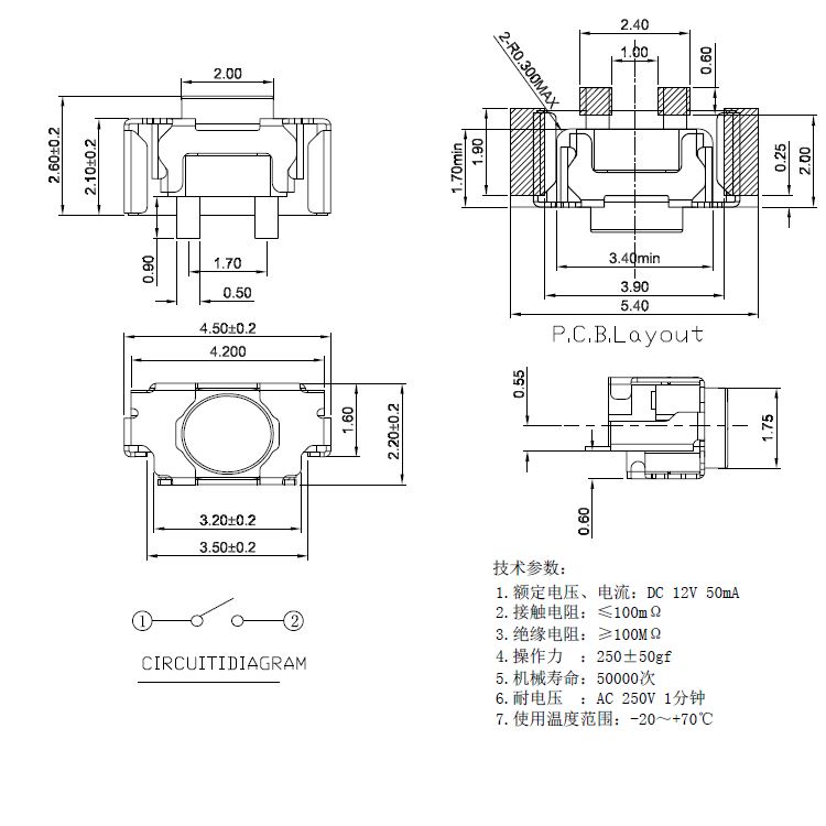 規(guī)格:2.2mm*4.5mm ? ? ? ? ? ? ? ? ?力度:250士50gf