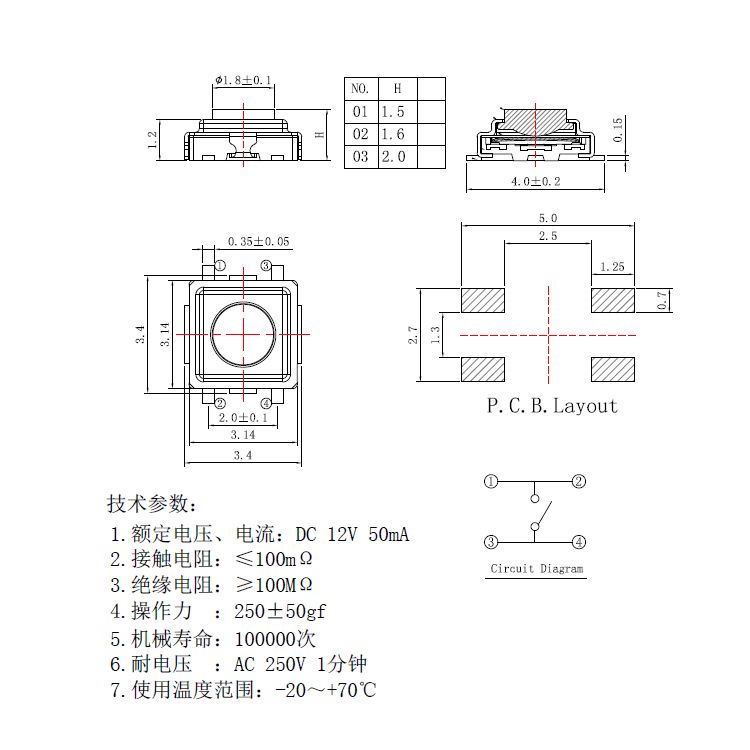 規(guī)格:3mm*3mm ? ? ? ? ? ? ? ? ?力度:250士50gf