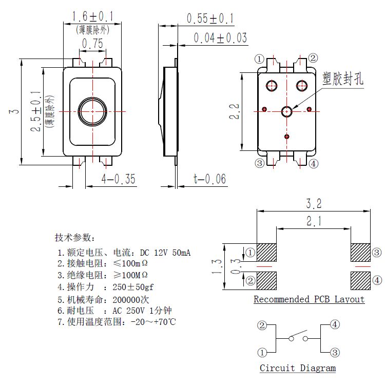 輕觸開關技術參數: