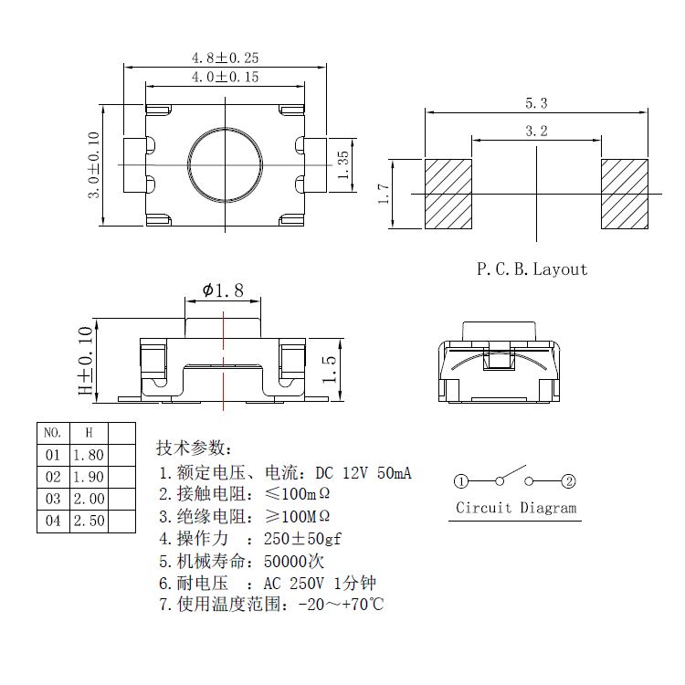 規(guī)格:3mm*4mm ? ? ? ? ? ? ? ? ?力度:250士50gf