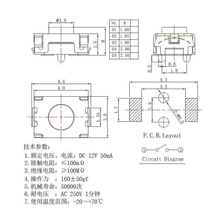 輕觸開關技術參數: