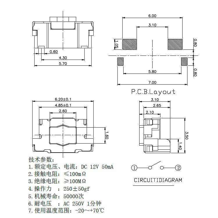 規(guī)格:3mm*5mm ? ? ? ? ? ? ? ? ?力度:250士50gf