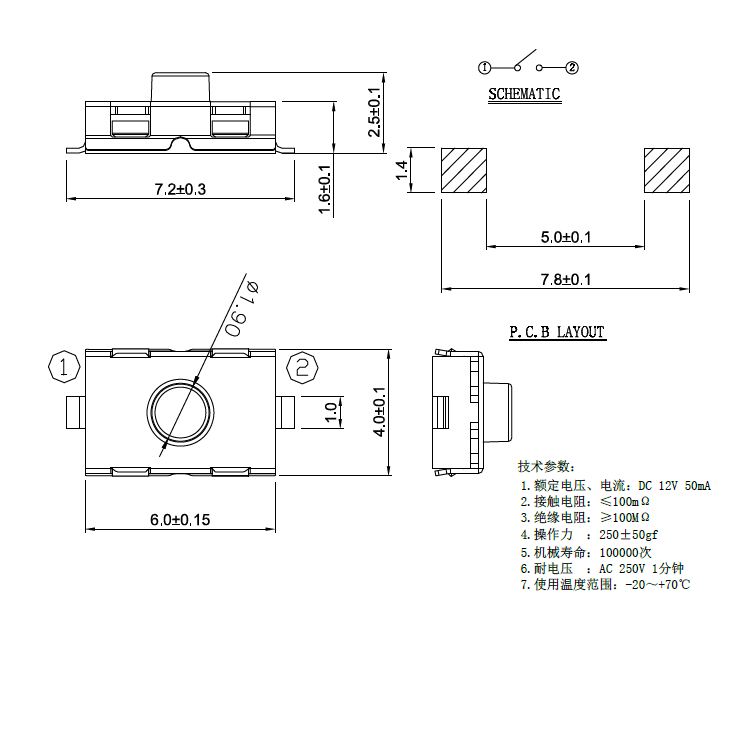 規(guī)格:4mm*6mm ? ? ? ? ? ? ? ? ?力度:250士50gf
