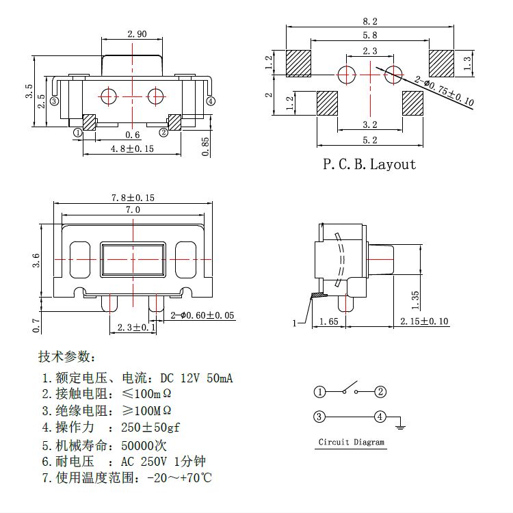 輕觸開關技術參數: