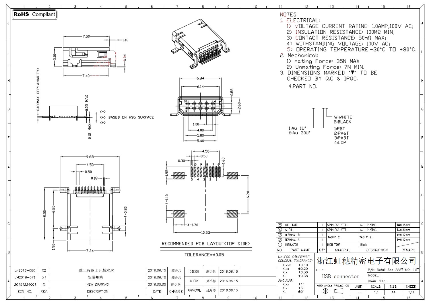 MINI USB插座技術(shù)參數(shù):