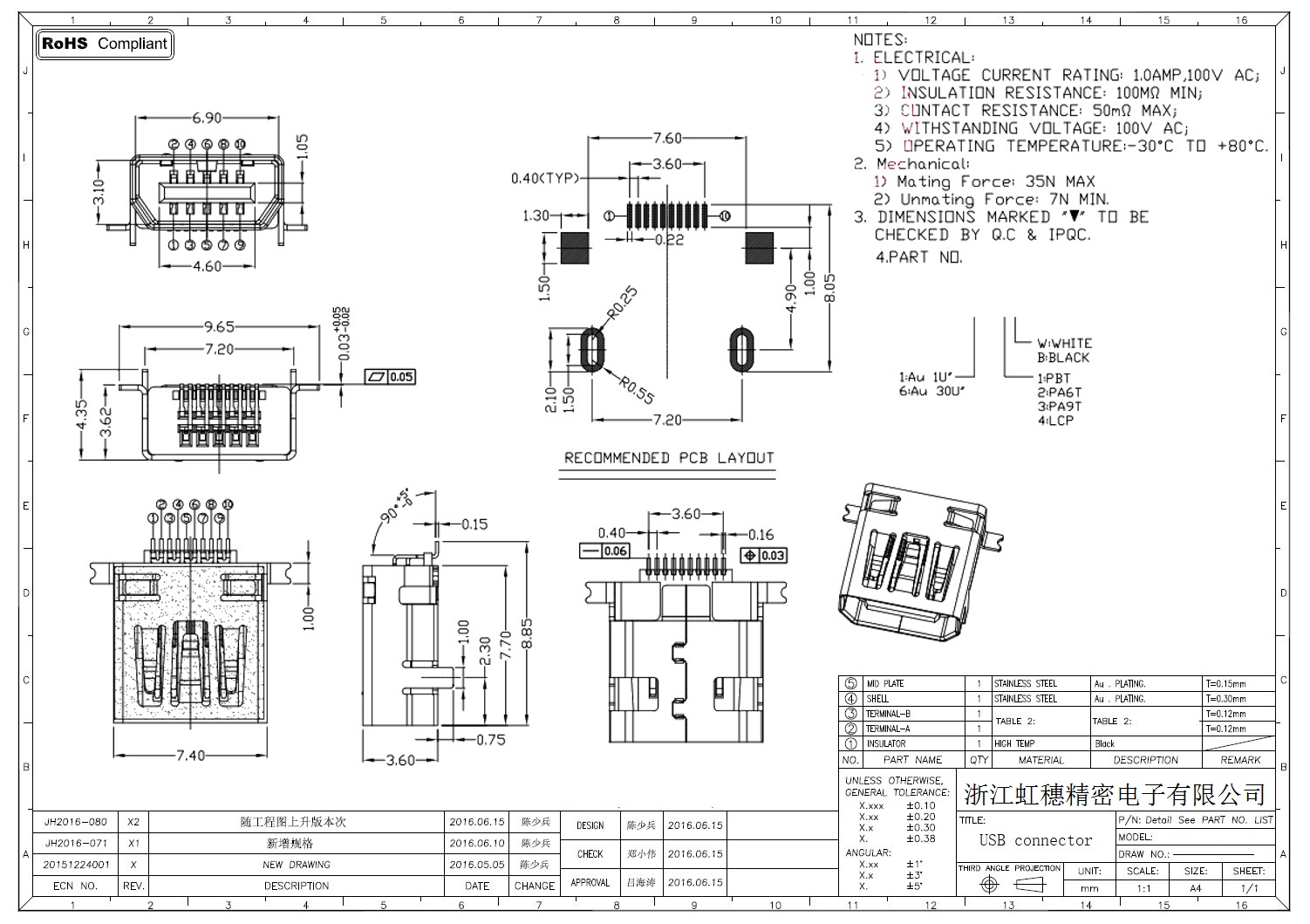MINI USB插座技術參數:
