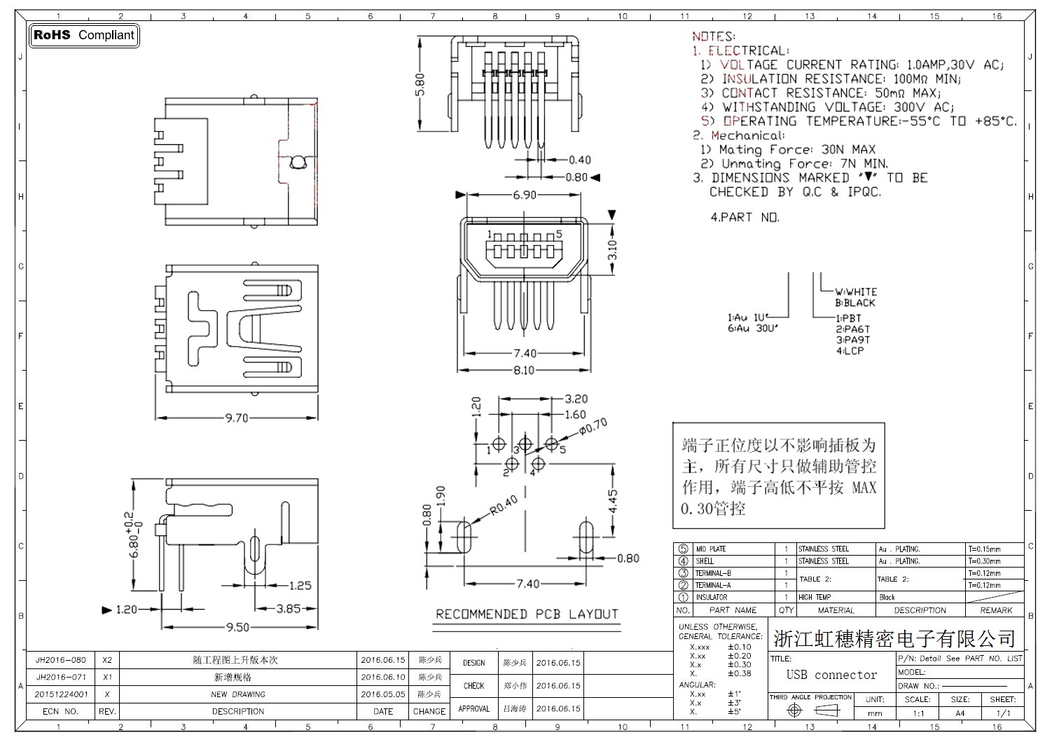 MINI USB插座技術(shù)參數(shù):