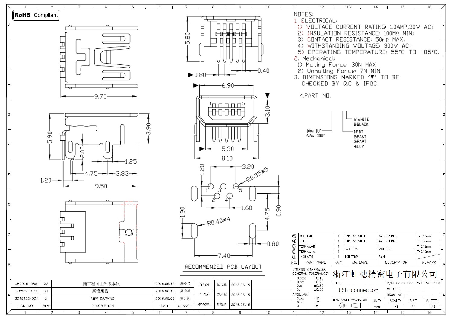 MINI USB插座技術(shù)參數(shù):