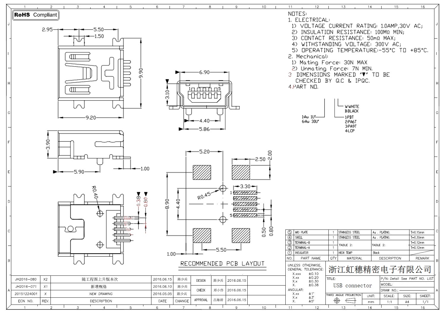 MINI USB插座技術參數:
