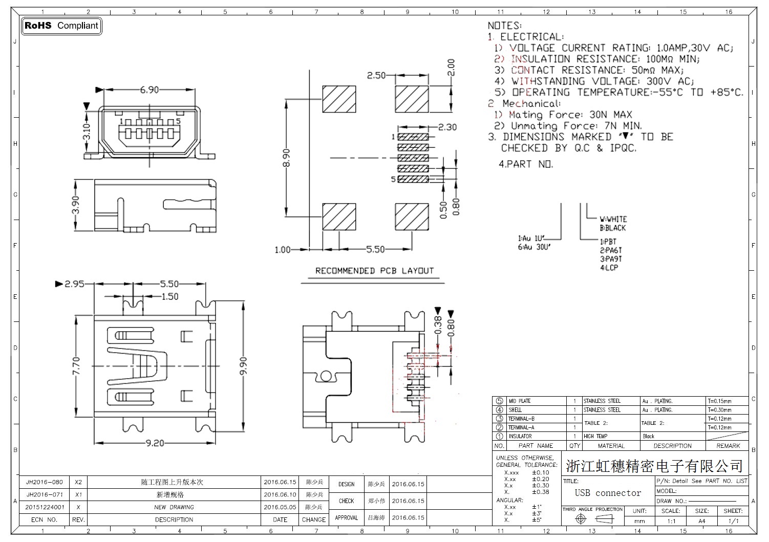 MINI USB插座技術參數: