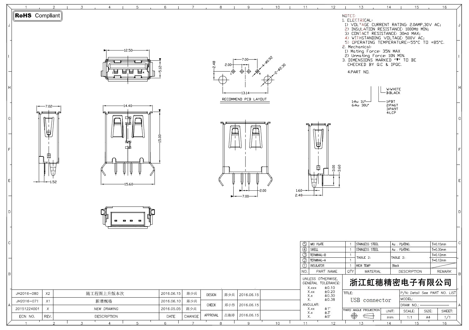 Product name:  USB 2.0 Jack connector