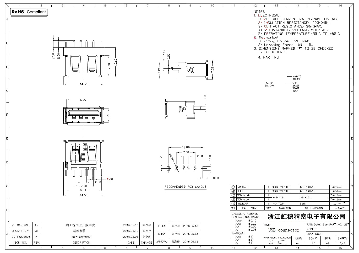 Product name:  USB 2.0 Jack connector
